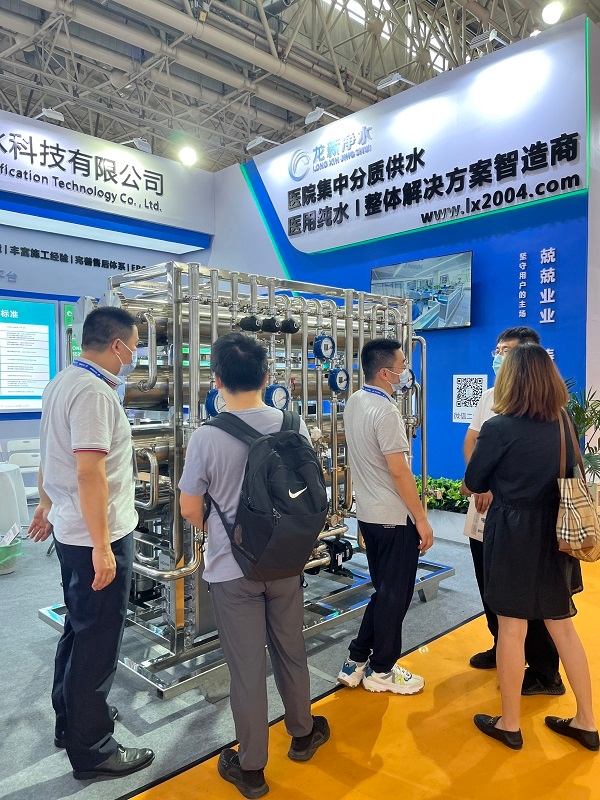 龍新凈水以創(chuàng)新為公司發(fā)展源動(dòng)力,在醫(yī)用純水領(lǐng)域始終推陳出新,為美好醫(yī)院建設(shè)及高質(zhì)量發(fā)展推波助瀾。前來(lái)龍新展位參觀洽談的觀眾熙來(lái)攘往,龍新凈水的“醫(yī)院集中分質(zhì)供水系統(tǒng)”吸引了眾多參展者前來(lái)了解,該系統(tǒng)解決了以往醫(yī)院各科室純水單獨(dú)供應(yīng)的現(xiàn)狀,具備降耗減排、節(jié)省人力空間、智能監(jiān)控、維護(hù)便捷等一系列優(yōu)勢(shì),為醫(yī)院的持續(xù)發(fā)展和高效管理奠定了基礎(chǔ)。