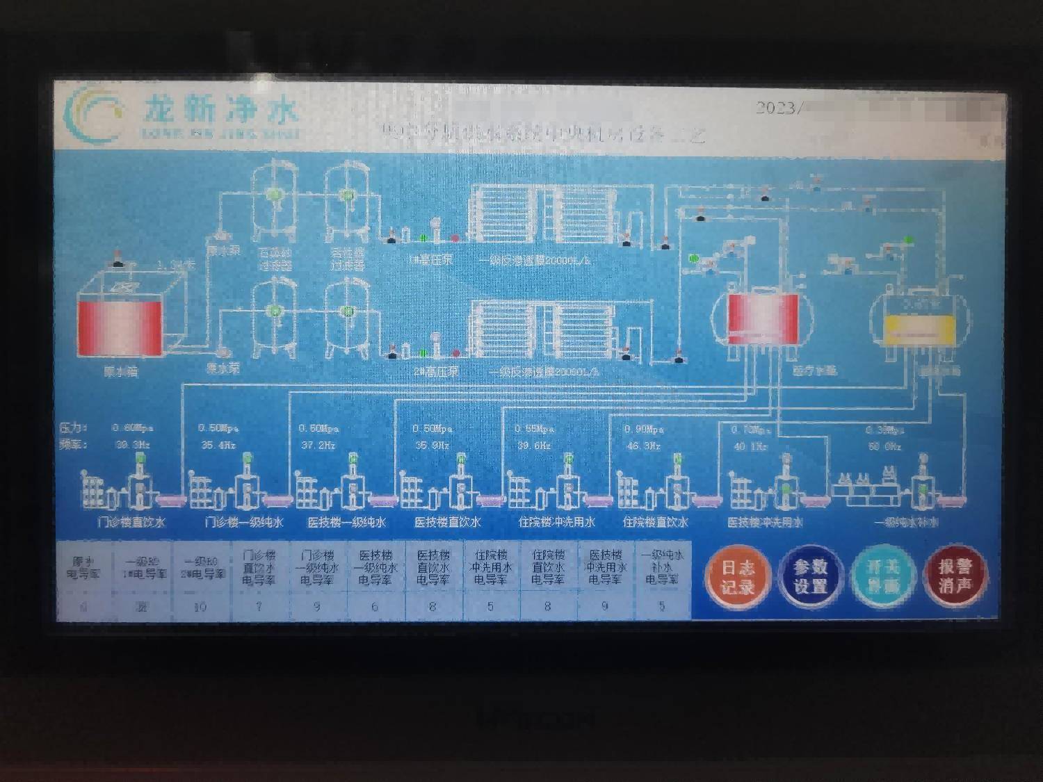 龍新根據醫院各科室不同的用水標準,合理的采用相匹配制水工藝,同時還結合醫院的信息化管理要求,融入智慧物聯技術,進行用水PC端與移動端的運行和操作、數據管理和監控,提供遠程監控服務平臺,協助醫院智能化管理和運行。